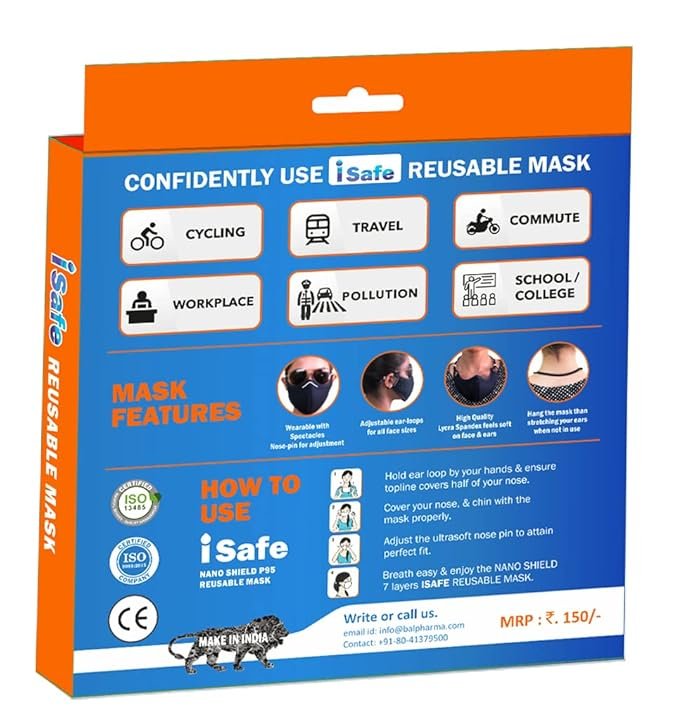 The iSafe Nano Shield P95 Reusable Face Mask is designed with a 7-layer filtration system. The iSafe face mask has a unique design for a universal fit to suit the anatomy of the eyes, nose, cheeks, mouth, and ears. The face mask has a C-cut design for fog-free and clear vision. Moreover, the iSafe mask is made from 100% cotton skin-friendly fabric and elastic. Best face mask for both men and women.