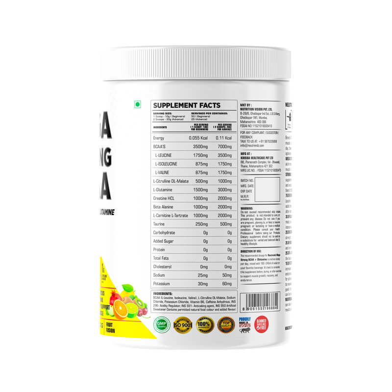 Neutrendz MEGA STRONG BCAA 500gm Fruit Fusion