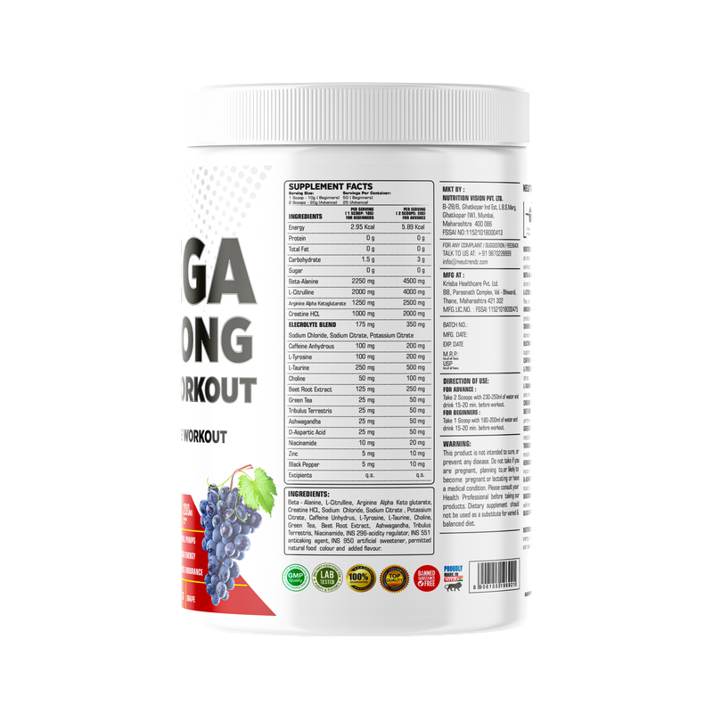 Neutrendz MEGA STRONG PRE WORKOUT 500gm Grape
